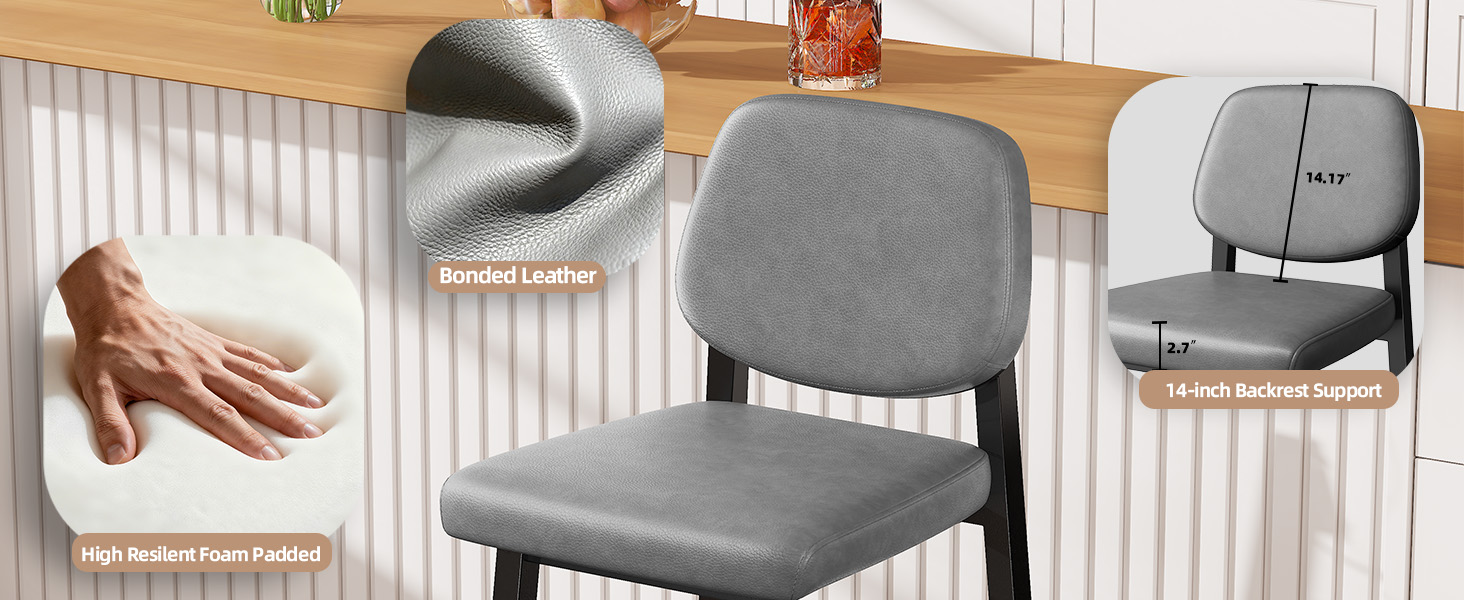 • Seat Cushion, Sit in Comfort: Kitchen bar stool’s cushion is made of quality bonded leather and soft foam, maximizing sitting comfort in your daily life.