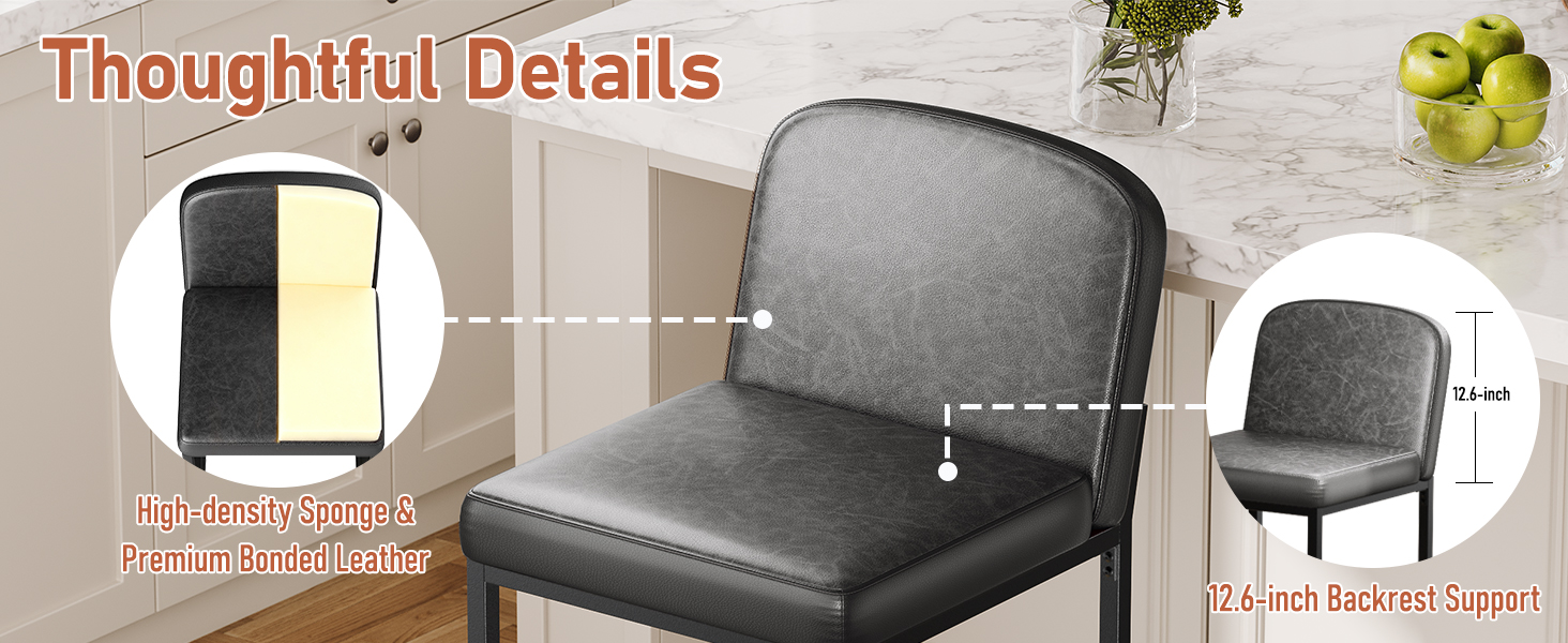 • High Quality Bonded Leather: Premium faux leather seat cushion is long-lasting and easy to clean, the counter stools set of 2 can be wiped off with a damp cloth.