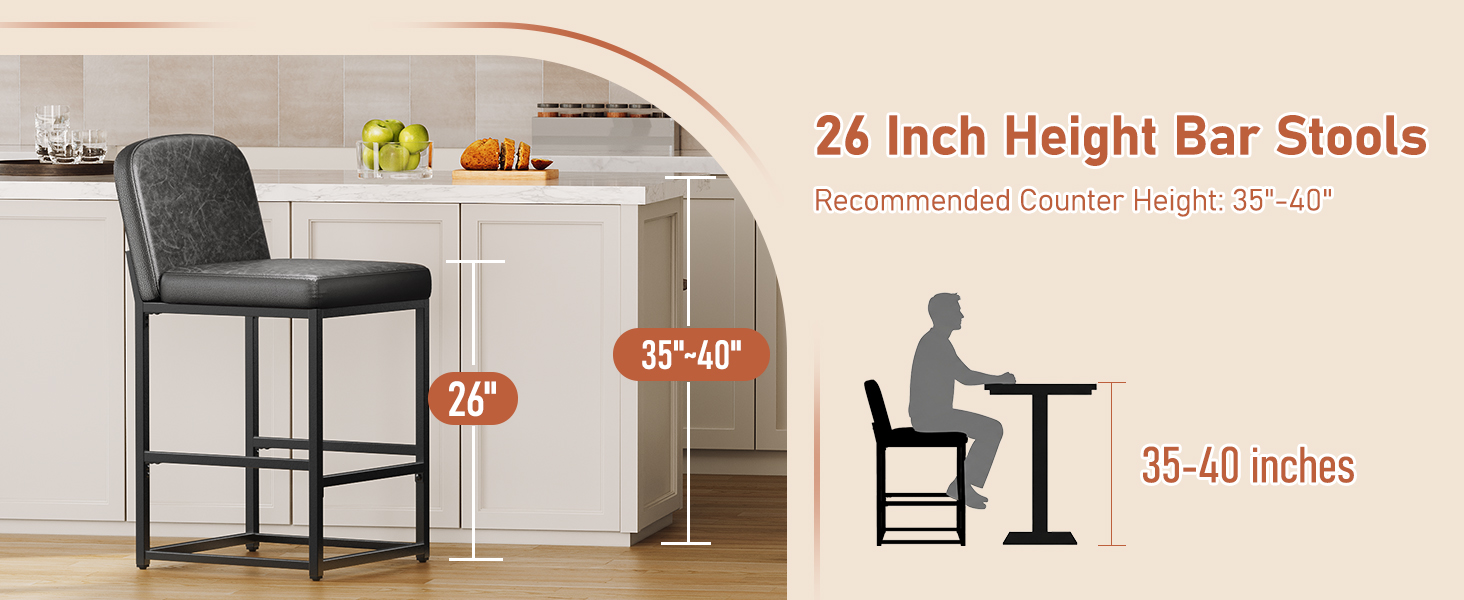 • With a 26-inch seat height, suitable for users from 4’9″ to 6′ (165-200 cm) and fit 35–40 inch counters.