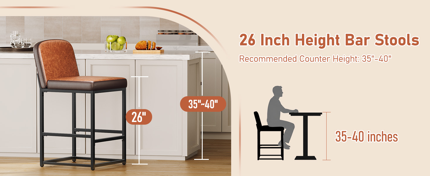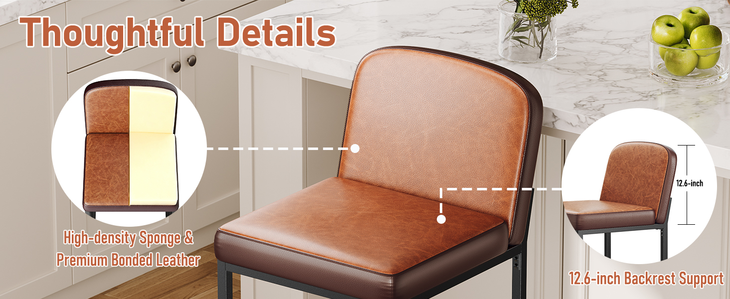 - High Quality Bonded Leather: Premium faux leather seat cushion is long-lasting and easy to clean, the counter stools set of 2 can be wiped off with a damp cloth.