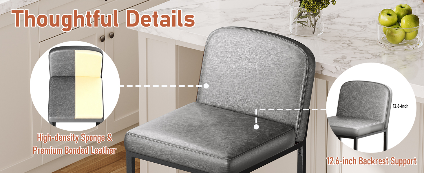 - High Quality Bonded Leather: Premium faux leather seat cushion is long-lasting and easy to clean, the counter stools set of 2 can be wiped off with a damp cloth.