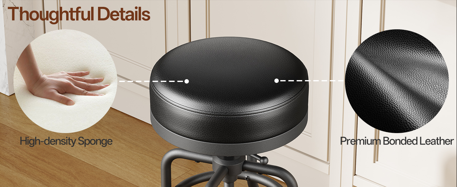 • High Quality Bonded Leather: Premium bonded leather seat cushion is soft and easy to clean, the counter stool can be wiped off with a damp cloth.