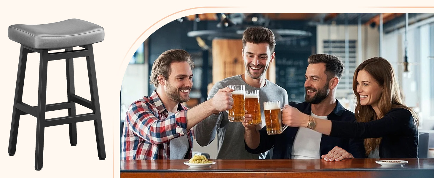 - Ergonomic Seat Cushion: Designed with an ergonomic saddle seat, the kitchen bar stools provide extra comfort for long-hours sitting and more relaxation.