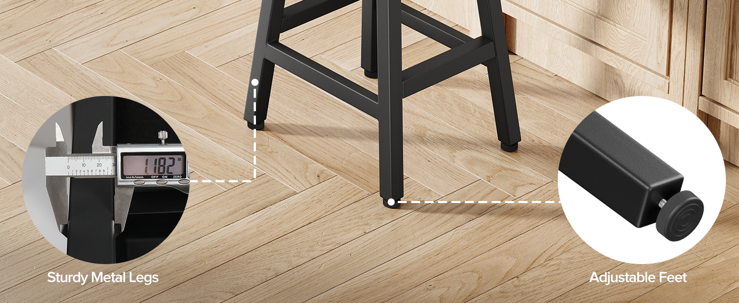 - Adjustable Feet: Leveling feet can be used on uneven ground to maintain balance and keep the modern bar stools stable when used.