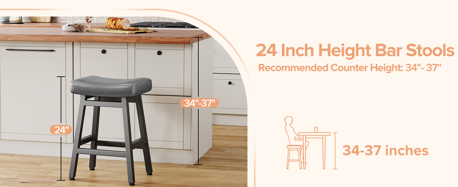 - Ergonomic Seat Cushion: Designed with an ergonomic saddle seat, the kitchen bar stools provide extra comfort for long-hours sitting and more relaxation.